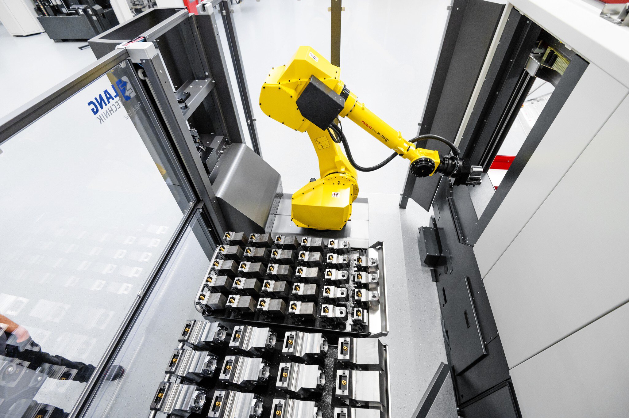 • LANG RoboTrex Automationszelle mit Fanuc 6-Achs-Roboter.