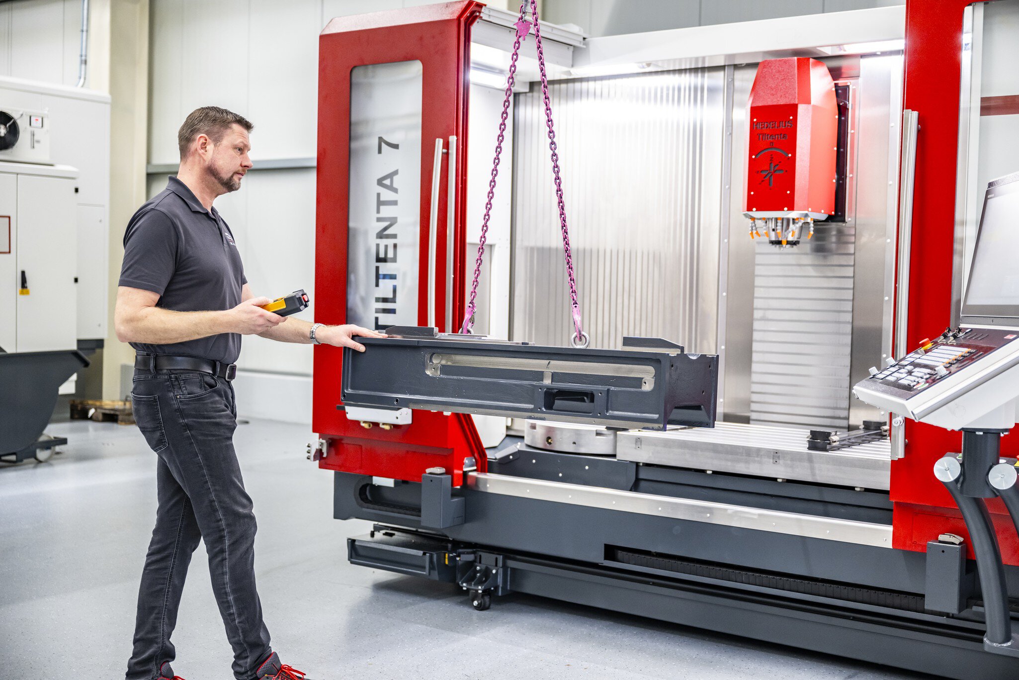 Compact and automatable - these two terms characterise the TILTENTA 7-2000 NEO. With a 2,000 mm X travel path, the infinitely variable swivelling main spindle and the integrated 5-axis rotary table for workpieces up to 800 kg and 1,050 mm diameter, HEDELIUS offers an uncompromising universal machining centre. Whether aluminium, grey cast iron or tool steel - with this CNC machining centre you can release a wide range of machining tasks in machine, tool and vehicle construction. The many automation solutions are another highlight.