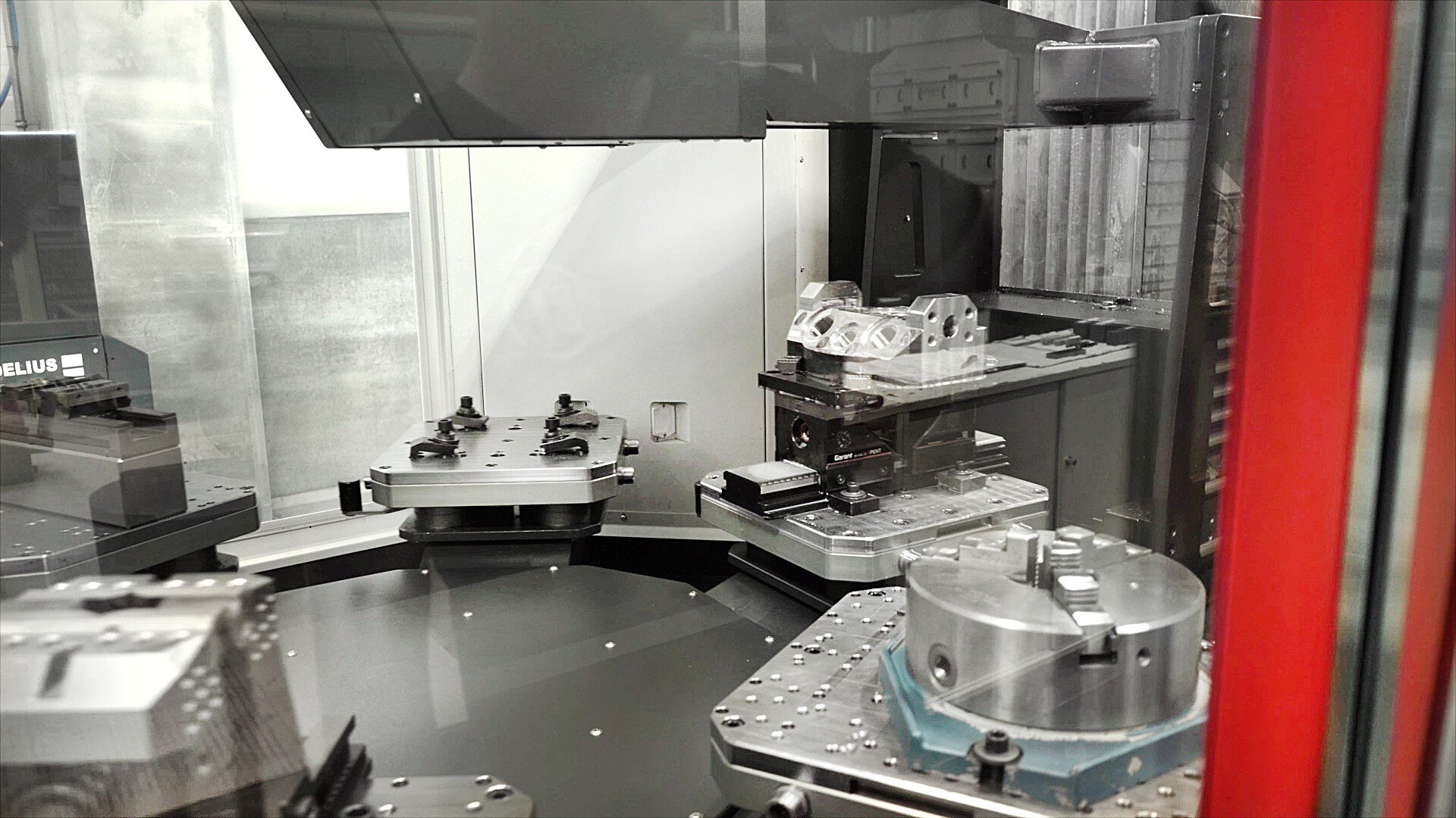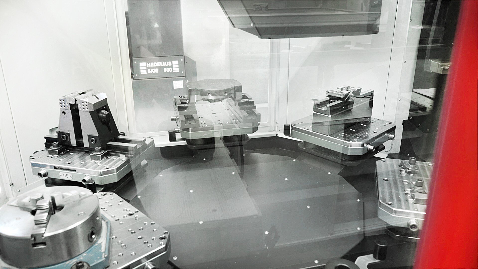 The ACURA 65 with travel paths of 700 x 650/465 x 600 mm is connected to a MARATHON pallet automation system of type PL406, also from HEDELIUS, meaning that machine and automation are perfectly harmonised: Automated loading of the machining centre with the pallets takes place via a side opening, which means that the work area remains accessible from the front and from above at all times for single part production during the day shift. The consistent Heidenhain operating concept on the machine and automation ensures convenient, simple operating. The Schunk Vero NSA zero-point clamping systems installed at the factory save valuable tooling times for each part.