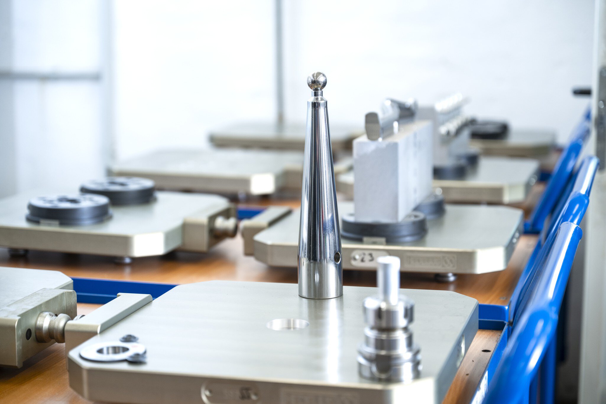 Fraune's customers come from demanding industries. With the illustrated pallet, the operators can recalibrate the machine kinematically in a fully automated pallet operation to ensure consistently high precision.
