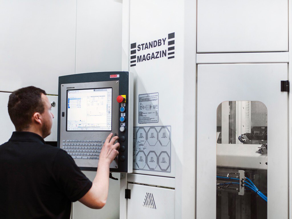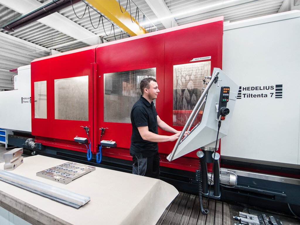 The TILTENTA 7-4200 was purchased as a replacement for the HEDELIUS BC 100, which had provided faithful service for twenty years until its replacement. It is therefore no surprise that a HEDELIUS was once again chosen for the new machine. With its extensive equipment package, the TILTENTA 7-4200 sets completely new productivity standards: In addition to the already proven oscillation mode, a fast tool changer, a standby magazine with 190 places and a high-precision laser measuring system ensure a further reduction in tooling times with consistently high production quality. Four axes in the tool guarantee workpiece-independent dynamics - an ideal prerequisite for high rapid motions and feeds of up to 40 metres per minute. The high feed rates are supported by an internal coolant supply (IKZ) 75 bar pressure. The IKZ also minimises tool wear.