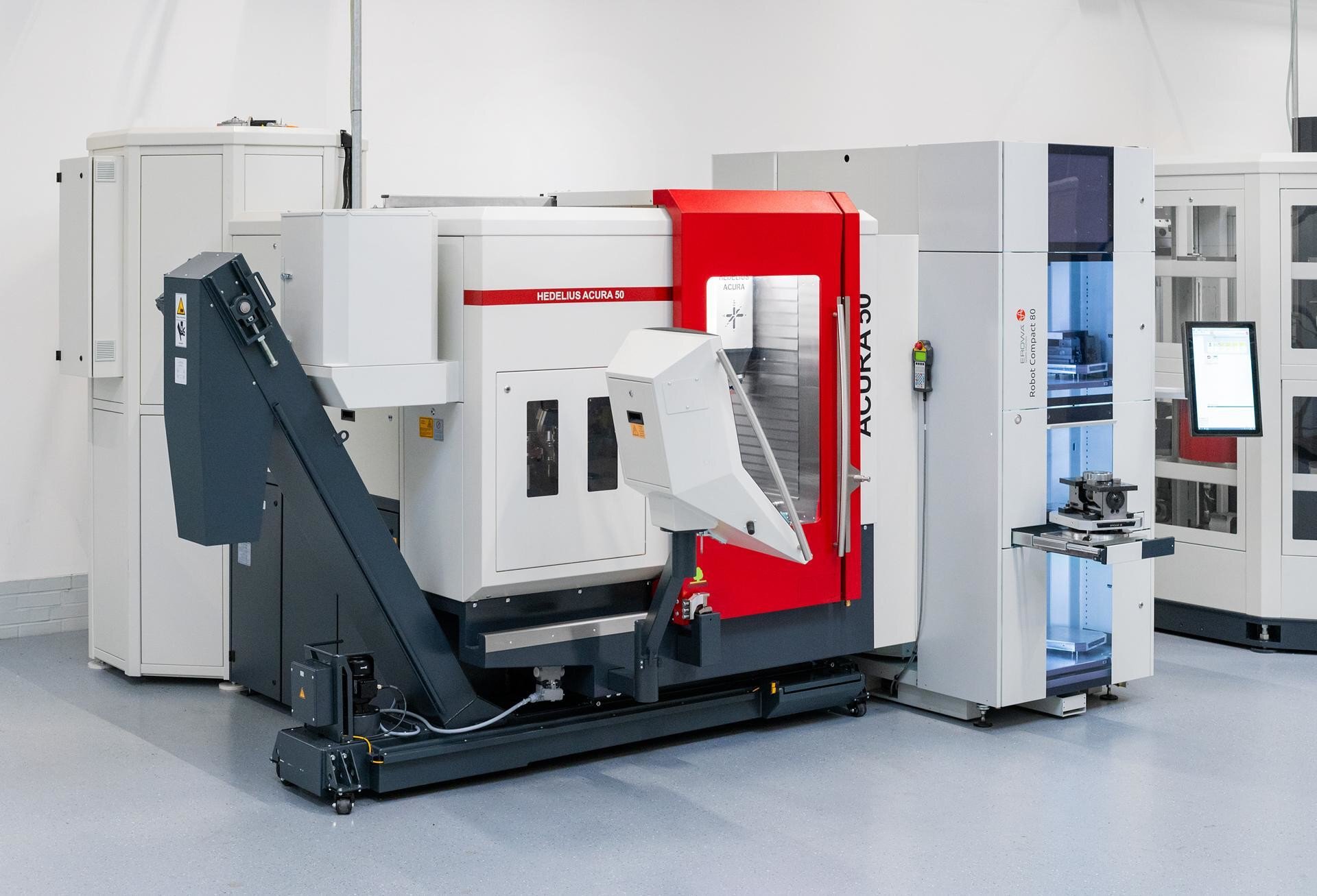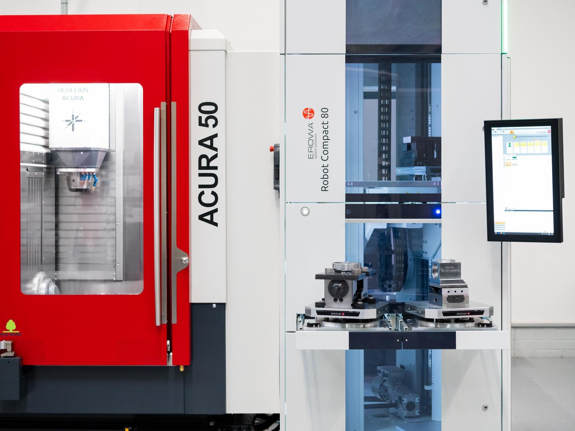 Munkadarab-automatizálás RoboJob Tower emelőrendszerrel + HEDELIUS ACURA 65 EL megmunkáló központ