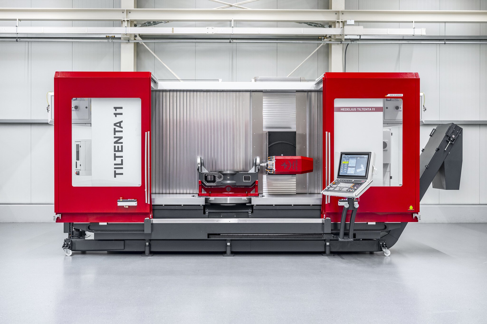 A HEDELIUS TILTENTA-11 sorozat a lenyűgöző 1100 mm-es Y-útjával új dimenziókba lép. A TILTENTA 11-2600 új alkalmazási területeket nyit meg a gép-, szerszám- és járműépítésben az egyedi alkatrészek és sorozatok megmunkálásában. Akár hosszú munkadarabok megmunkálásához, akár 5 oldalas teljes megmunkáláshoz integrált NC forgácsolóasztallal - a TILTENTA crossover koncepció számos feladatot megold. A fokozatmentesen elforgatható főorsó és a hosszú gépasztal kombinációja integrált NC forgácsolóasztallal lehetővé teszi a nagyméretű munkadarabok vegyes gyártását és a precíz 5 tengelyes megmunkálást egy gépen.
