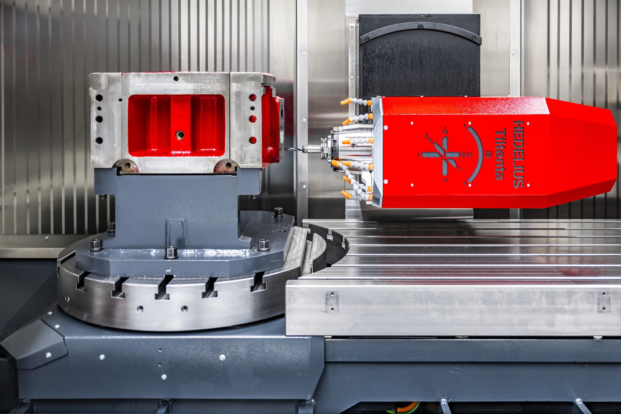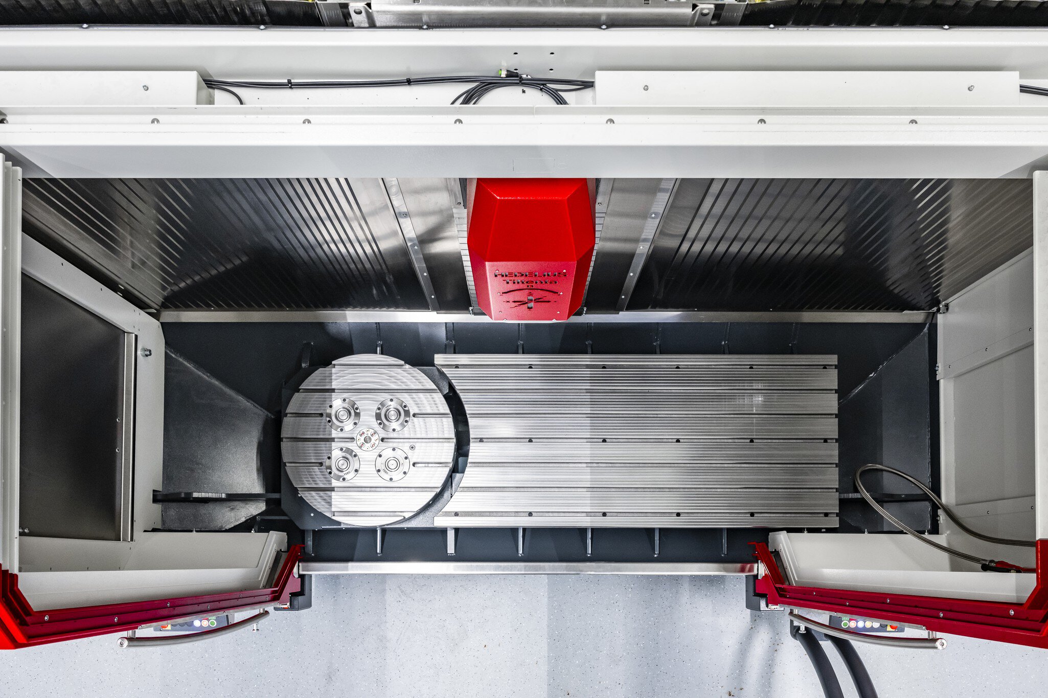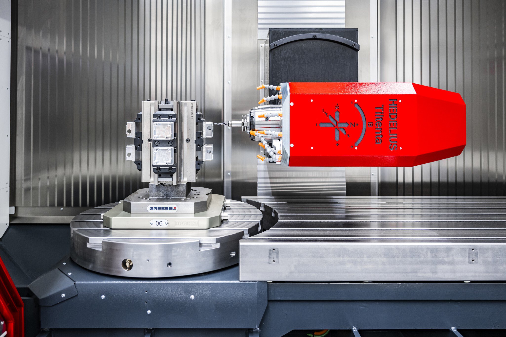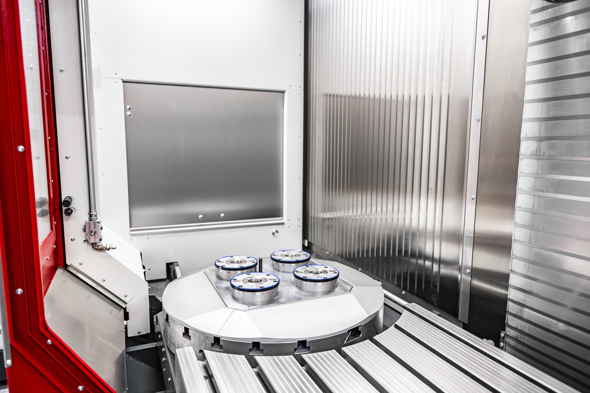 A HEDELIUS mozgóoszlopos megmunkálóközpontok tartozékainak széles választéka jelentősen kibővíti a gépek alkalmazási területét. A tágas megmunkálási terekbe integrálhatók a 4 oldalas megmunkáláshoz szükséges NC forgótányérok vagy az ellencsapágyazott forgóhidak. A HEDELIUS gépek opcionálisan felszerelhetők nullponti rögzítő rendszerrel, amelyet gyárilag a gépasztalba szerelnek.