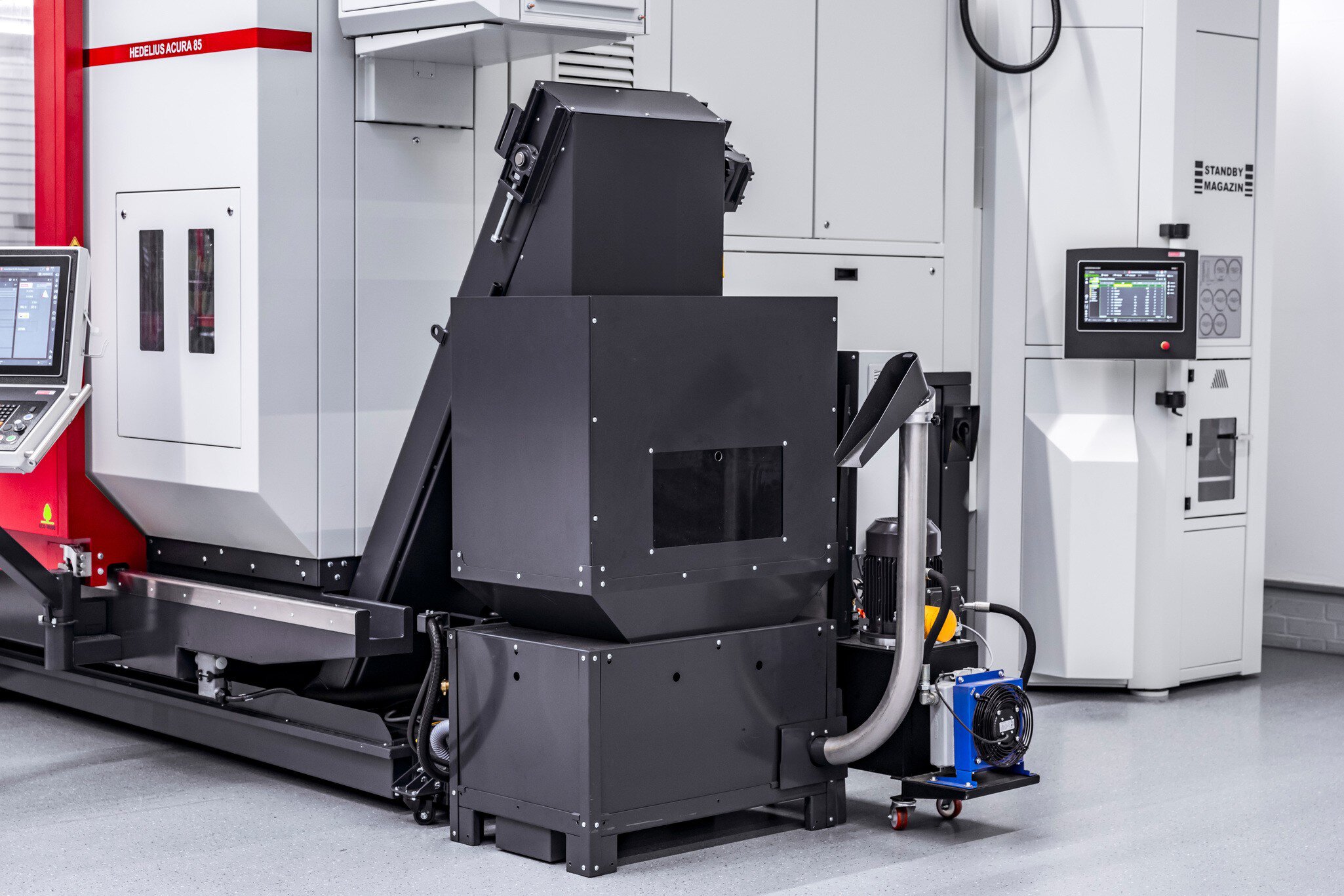 A HEDELIUS felhasználóbarát és fenntartható megoldást kínál a hűtőfolyadékok újrahasznosítására is. Ha egy forgácsprést csatlakoztat a megmunkálóközpontjához, a megmunkálás során keletkező forgácsot elválasztja a hűtő-olajoktól. A megtapadt hűtő kenőanyag szinte teljesen kipréselődik a forgácsból, és visszakerül a forgácsszállítóba. Ezenkívül a brikettálás során a keletkező forgács térfogata kb. 80 %-kal csökken. Ez azt jelenti, hogy az ártalmatlanítandó hulladékból nyereségesen újrahasznosítható anyagokat állíthat elő.