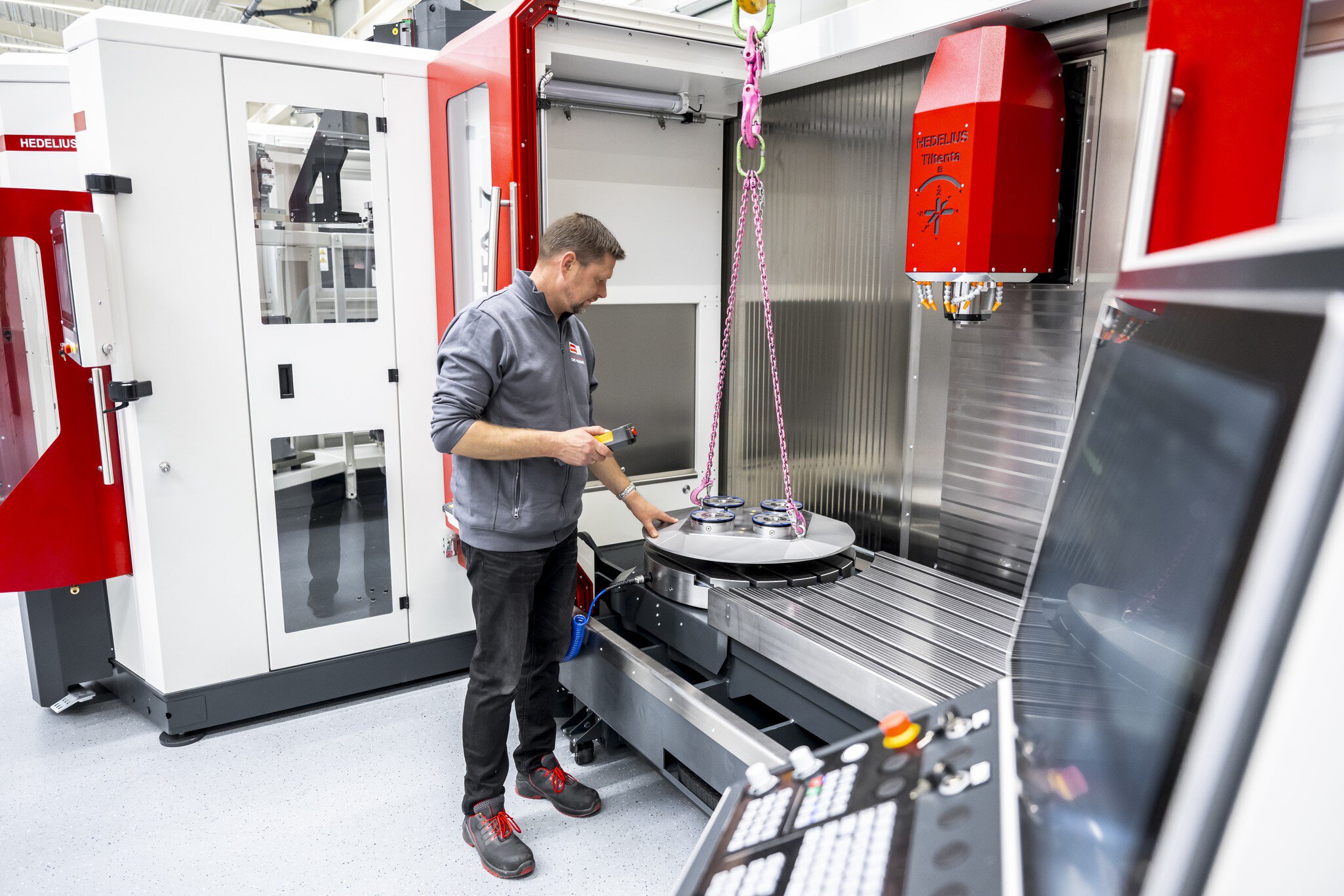 Indunorm Indumatik VL 80 angebunden an 5-Achs-Bearbeitungszentrum HEDELIUS ACURA 65 EL