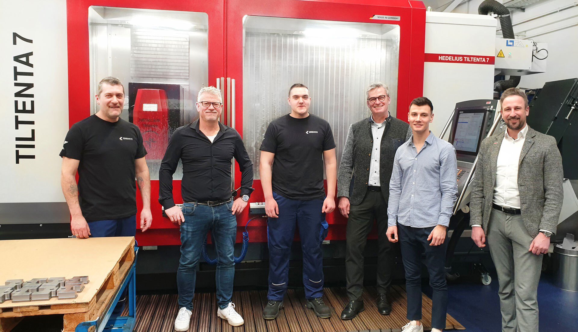 Nicht weniger wichtig sei jedoch die richtige Technik. Angesichts der strategischen Ausrichtung hin zur Fertigung komplexer, hochpräziser Baugruppen hat man sich 2021 für die Anschaffung einer TILTENTA 7-2600 – eines Hochleistungs-Bearbeitungszentrums mit schwenkbarer Hauptspindel aus dem Hause HEDELIUS – entschieden. „Die Maschine bringt alles mit, was wir uns gewünscht haben“, schwärmt Thomas Kreiselmeyer, der in der Programmierung tätig ist. „Dazu gehört zum Beispiel der sehr wirtschaftliche Pendelbetrieb.“