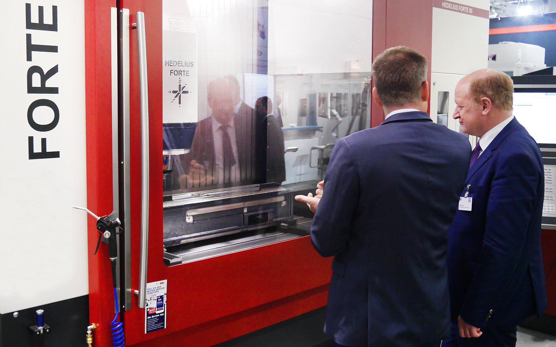 De EMO in Hannover is voor HEDELIUS natuurlijk ook de belangrijkste beurs voor de verspanende industrie. Daarom heeft het familiebedrijf uit Meppen in Nedersaksen zijn aanwezigheid op de beurs de afgelopen jaren steeds verder uitgebreid. Met 510 vierkante meter standruimte was het in 2019 de grootste Standaard tot nu toe. Ook politici hebben dit opgemerkt. Op de allereerste dag van de beurs nam de minister van Financiën van Nedersaksen, Reinhold Hilbers, de gelegenheid te baat om HEDELIUS te bezoeken en zich te laten rondleiden door eigenaar en Directeur Dennis Hempelmann. Hij kreeg informatie over de machines, de beurspresentatie en de algemene situatie van het bedrijf. "We zijn erg blij met het bezoek van de heer Hilbers en zijn interesse in onze aanwezigheid op de beurs. Het laat ons zien dat we met ons bedrijf op de goede weg zijn en steeds meer erkenning krijgen van het publiek," zei Directeur Dennis Hempelmann.