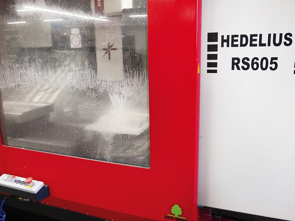 Dass mit der Anschaffung der MC 40 vor über zehn Jahren ein richtiger und wichtiger Schritt gemacht wurde, lässt sich auch daran erkennen, dass heute bei der mech-tron GmbH & Co. KG allein zwanzig Mitarbeiter zweischichtig an zehn Fräsmaschinen arbeiten. Aus dem Hause HEDELIUS sind neben der MC 40 noch ein 3-Achs-Bearbeitungszentrum C 60 2000 und ein 5-Achs-Bearbeitungszentrum RS 605 K20 im Einsatz. Die RS 605 K20 verfügt über einen festen Maschinentisch mit 1330 mm X-Verfahrweg und einen Dreh-Schwenktisch mit Ø 520 x 440 mm. Auf den Maschinen werden hauptsächlich Einzelteile und Kleinserien gefertigt, mit Werkstückgewichten von 0,5 kg bis 35 kg und unterschiedlichsten Werkstückgrößen. Zum überwiegenden Teil bestehen die Bauteile aus Aluminium, selten auch mal aus Edelstahl, Baustahl und Buntmetallen. „Für die RS 605 K20 haben wir uns entschieden, weil so alle Seiten eines Werkstücks auf einer Maschine bearbeitet werden können, ohne umspannen zu müssen. Rüstzeiten konnten damit deutlich reduziert werden“, erklärt Abteilungsleiter Strasser die Entscheidung für die 5-Achs-Fräsmaschine von HEDELIUS. Ausschlaggebend waren aber auch andere Faktoren. Eine Bearbeitung kann je Bauteil von einer Minute bis über vier Stunden dauern. „Zum Ende der Spätschicht rüsten wir ein Bauteil mit langer Durchlaufzeit ein und wenn das dann nachts fertig bearbeitet ist, geht die Maschine bis zur Frühschicht in den Energiesparmodus“, so Robert Strasser. Geschäftsführer Sterkel ergänzt: „Wir müssen jährlich ein Energieaudit durchführen und nachweisen, dass wir den Energieverbrauch reduzieren bzw. Energie einsparen. Daher war der Eco-Mode von HEDELIUS ebenfalls ein Entscheidungskriterium für die RS 605.“
